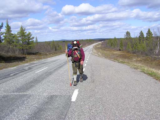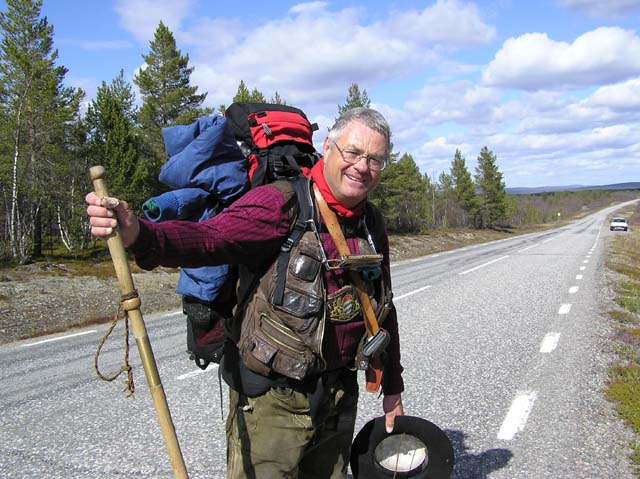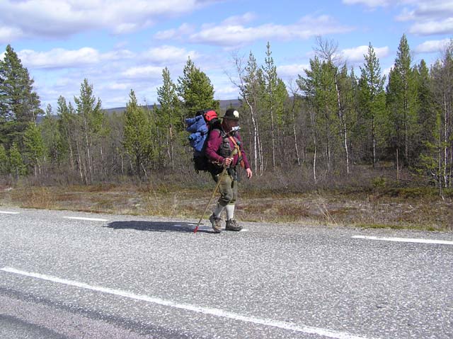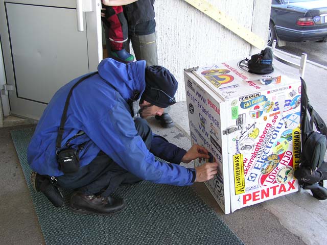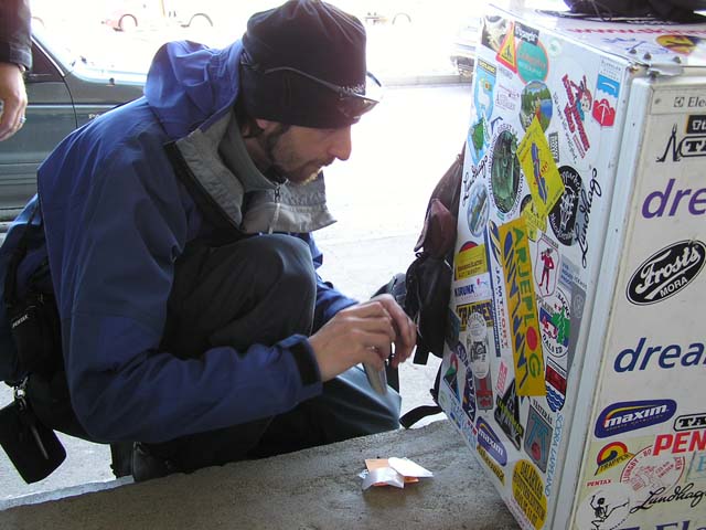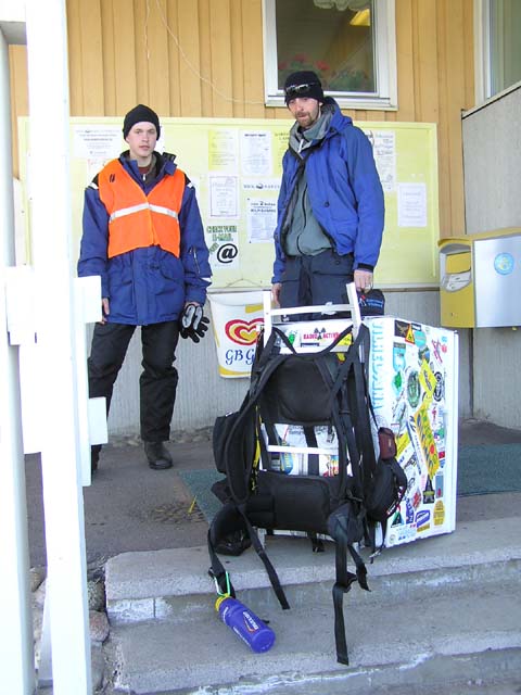 Karesuando Oliver Vogel, känd vid tillfället som kylskåpsmannen anlände till Karesuando på lördagen den 24. april 2004. Hans mål är att besöka så många ställen i Sverige som möjligt och till slut skriva en reseguide om Sverige. Nu har han 4 års vandring och ca. 250 kommuner bakom sig. Det ovanliga med han är att hans ryggsäck består av ett kylskåp! På bilderna nedan håller han på klistra sameflaggan och Karesuandomärket på sitt kylskåp.